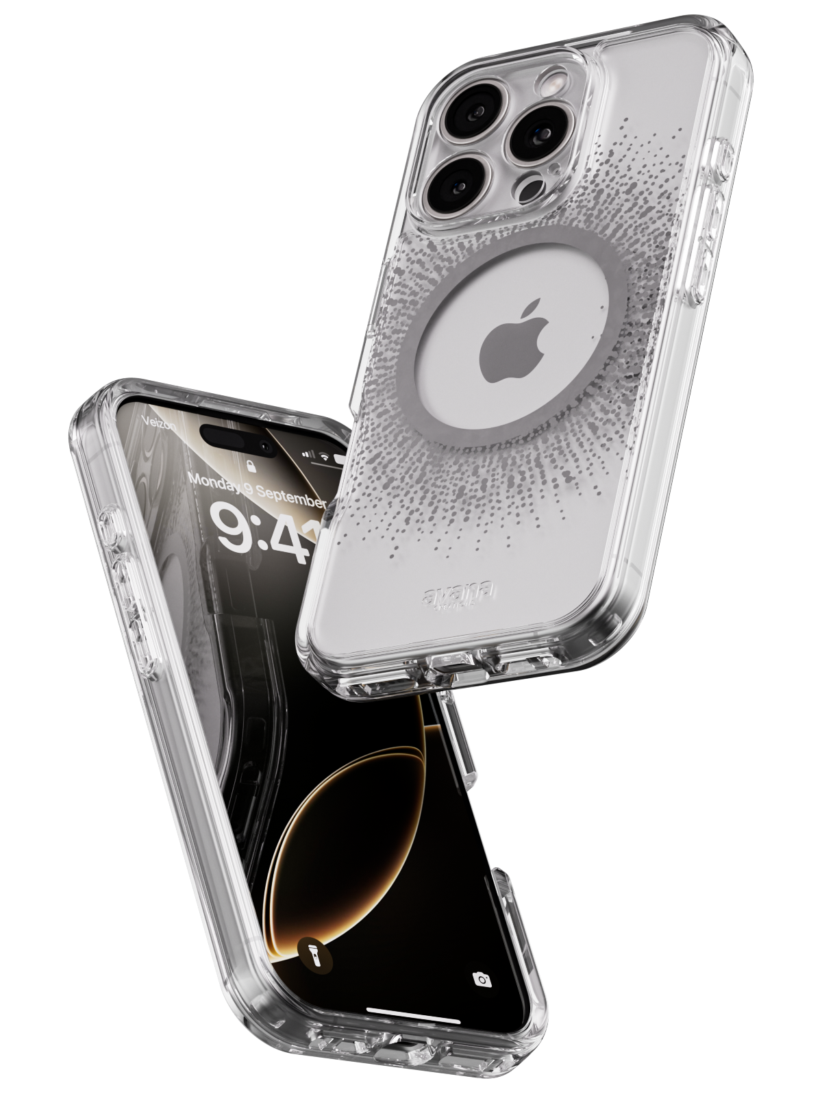 love MagSafe® but hate the ring? this clear case boasts chic metallic foil designs that sparkle, cleverly hiding the magnet ring for a sleek, stylish look!