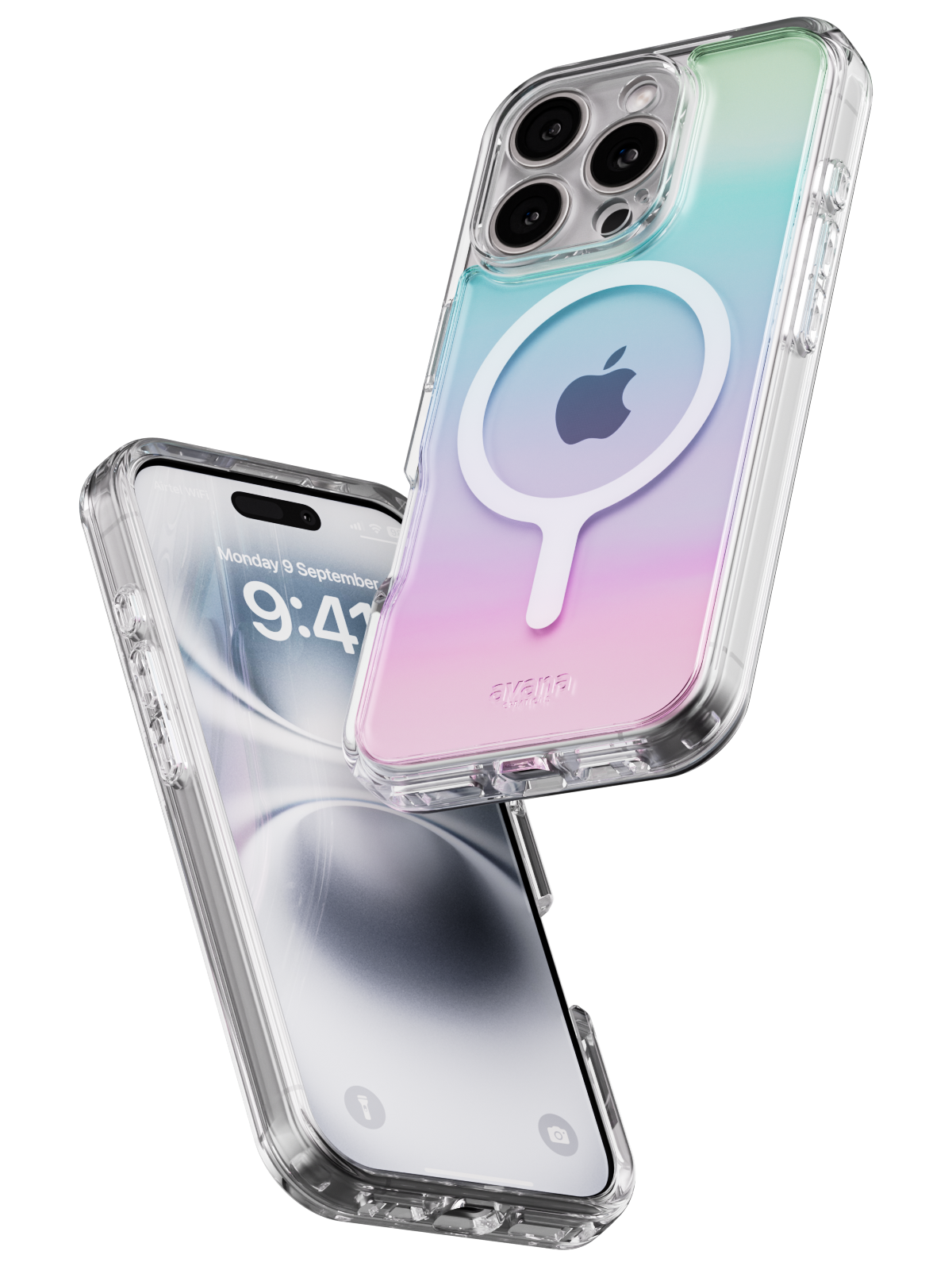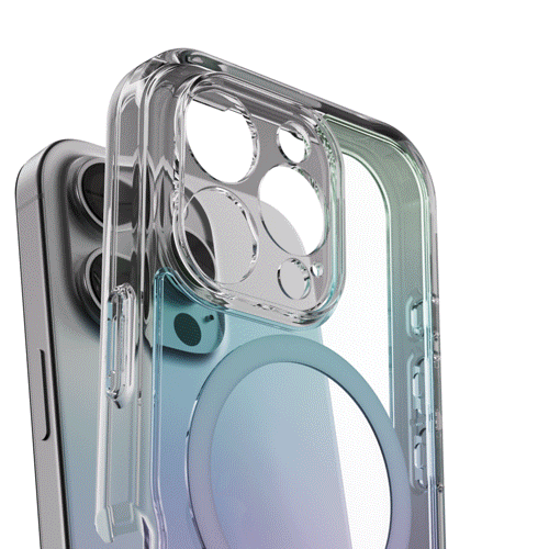 this clear case is a fashion must-have, boasting a dreamy iridescent shimmer that moves with you, turning your phone into a dazzling, shimmering accessory!